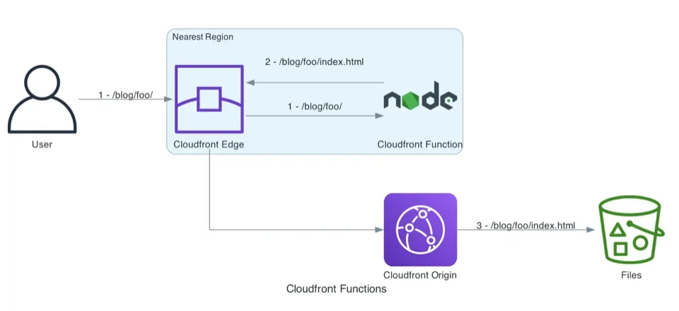 Une autre solution est disponible depuis la mise en place des Lambda@Edge (2016) et des Cloudfront functions (2021). En utilisant l'un de ces deux outils, nous pouvons manipuler la requête HTTP entrante, et si l'on identifie une URL terminant par un slash (/) ou qui ne contient pas d'extension nous ajoutons à la fin '/index.html'.