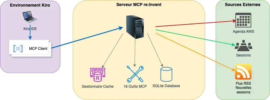 Dans cet article, je partage mon retour d'expérience sur le développement d'un serveur MCP pour AWS re:Invent 2025, mon premier projet open source de cette envergure. Ce projet illustre parfaitement les défis et opportunités du développement MCP, tout en démontrant comment (Kiro)[https://kiro.dev/] peut considérablement accélérer le processus de développement.